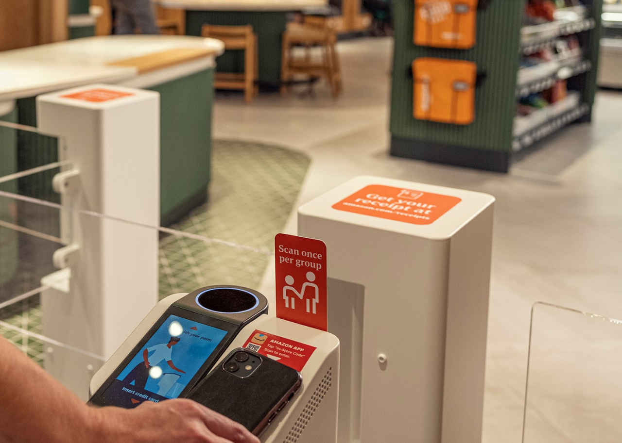 To enter the Amazon Go market and store’s lounge seating, customers can use the “In-Store Code” in the Amazon Shopping app, Amazon One or a credit card, and then shop the Amazon Go market like any other Amazon Go store. Once inside, anything customers take off the shelf is automatically added to their virtual cart. Anything they put back on the shelf comes out of their virtual cart. When a customer is done shopping, they can either sit in the lounge area to enjoy their Starbucks® beverage and food item selected from the Amazon Go market or be on their way. After the customer leaves the Amazon Go market, their card will be charged and they can access their receipt within a few hours, sometimes faster.