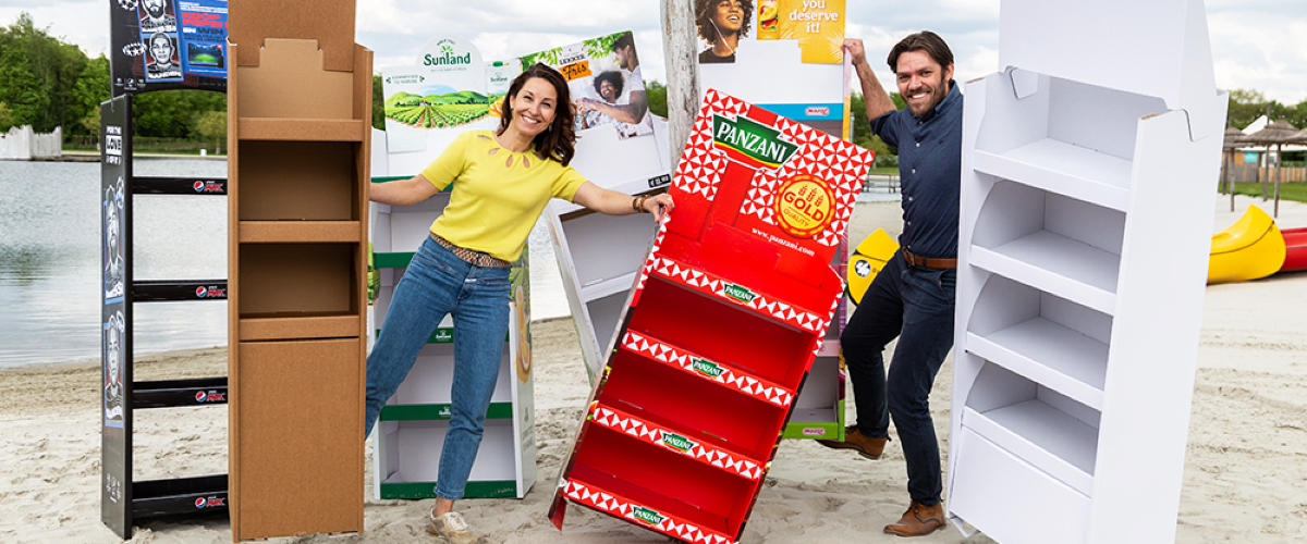 Hoe zetten we producten slimmer en beter in de markt? Over die vraag buigen onze designers zich dagelijks. Het leidde al tot verschillende innovatieve oplossingen. Zoals het Hang-In-display, een tegenhanger van de gangbare klikdisplays. Ricardo: “Dit display is van 100 procent karton, beresterk en je gooit het na gebruik zo de papierbak in. Bovendien ben je anders dan bij sleeves niet gebonden aan standaard maten en vormen. Een kartonnen display kan zo groot of gek als je zelf wilt. Hoe makkelijk wil je het hebben?” Of wat denk je van de ECO-topper: een kartonnen topkaart. Ricardo: “Je klapt de ECO-topper eenvoudig naar voren. Je zet hem op het display, zonder dat er kunststof aan te pas komt.”