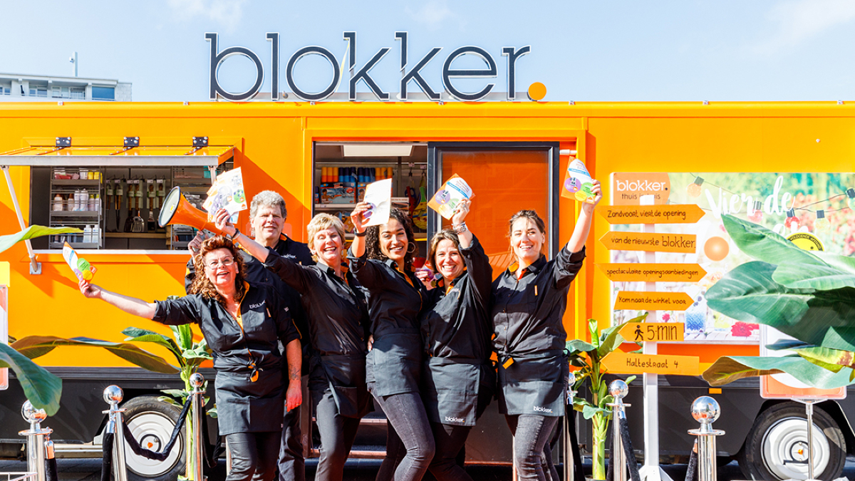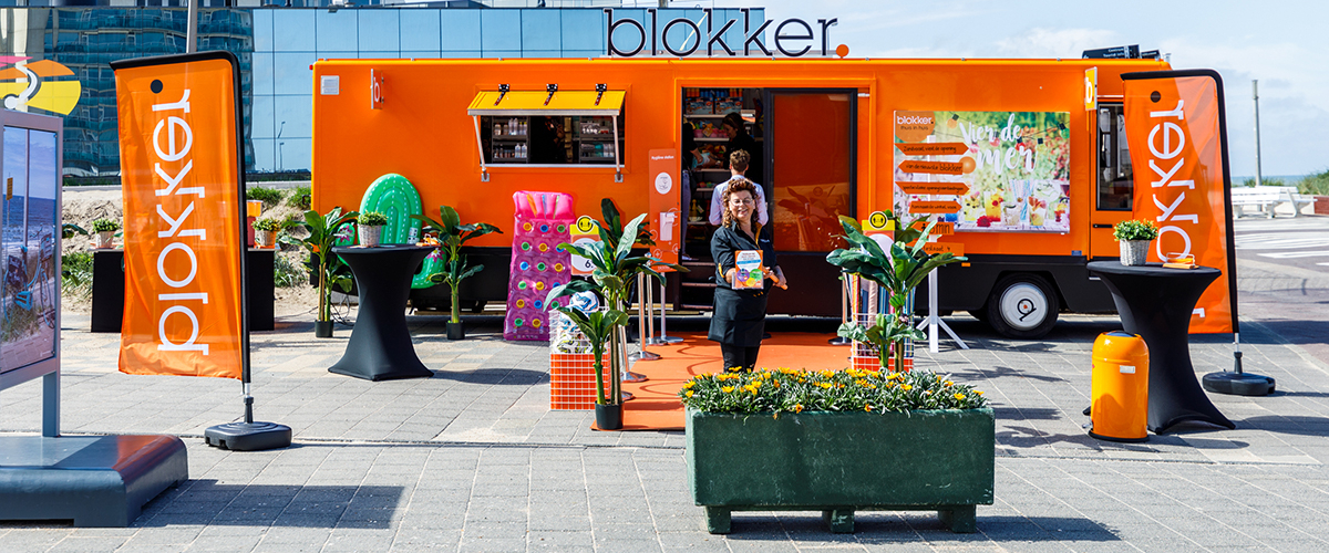 Bezoekers van de Blokker buurtbus worden via divers POS-materiaal gewezen op de net geopende Blokker op slechts 5 minuten lopen afstand. Zo is de oranje loper uitgerold, worden er flyers uitgedeeld, en maken wapperende beachflags en diverse strandattributen de sfeer compleet. De buurtbus staat namelijk pal aan de boulevard geparkeerd. Oranje gekleurde bewegwijzering stuurt shoppers de juiste kant op, waarna zij via een vrolijke ballonnenboog ontvangen worden bij de winkel. In alle rust kan dan ook het overige assortiment van Blokker worden bekeken.