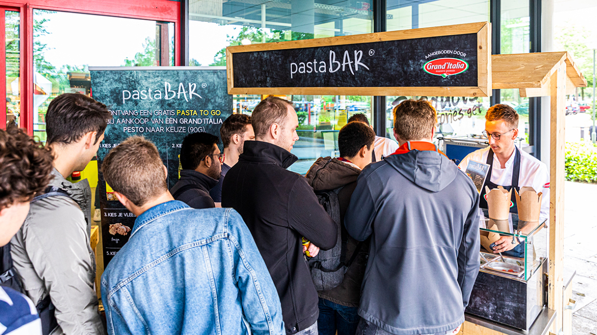 Het mechanisme achter de pastaBAR® is simpel: ontvang een gratis pasta to-go bij aankoop van één Grand’Italia pesto naar keuze! En de keuze, die is reuze. Zo kunnen shoppers kiezen uit verschillende soorten pasta, pesto, vlees of vis, groente, toppings én kaas. De pasta to-go wordt vervolgens voor je neus klaargemaakt; verser kan het haast niet!