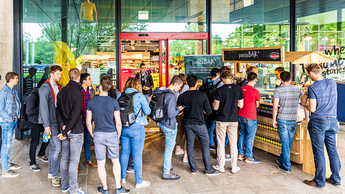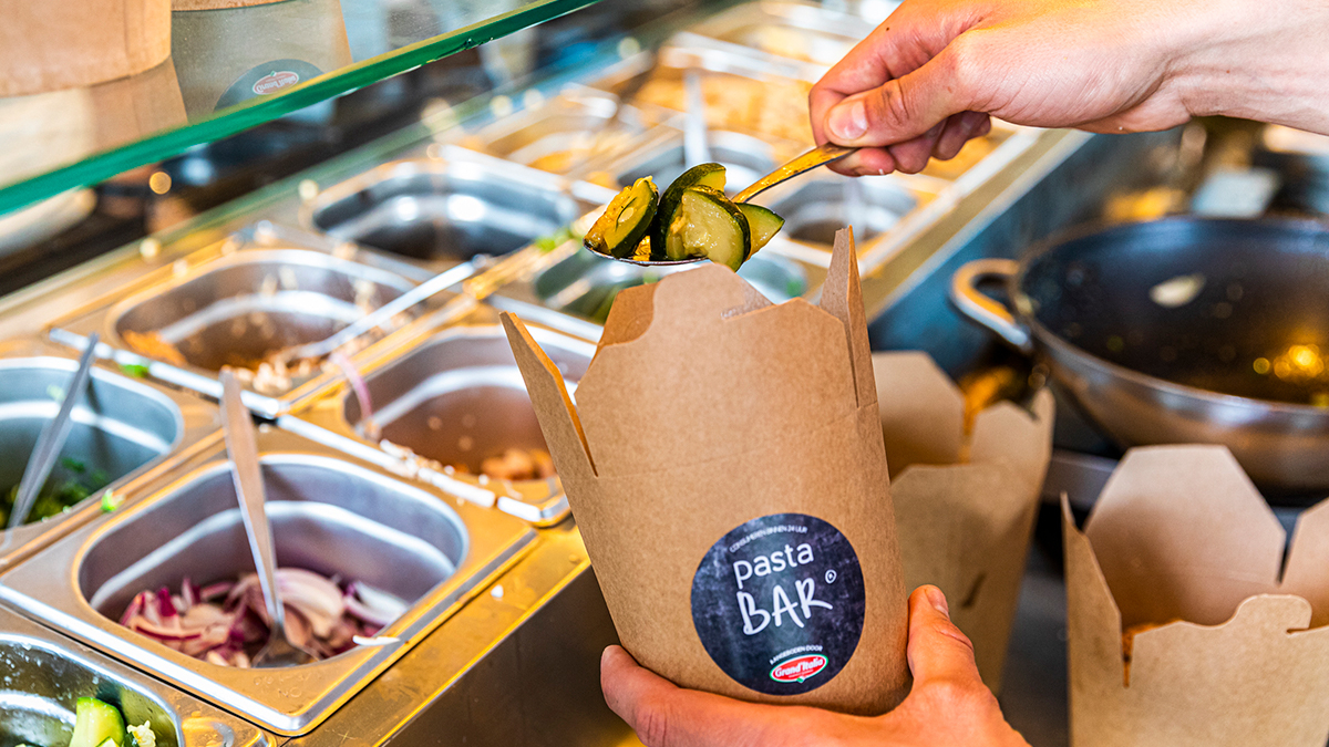 De pastaBAR® maakt ook onderdeel uit van het BAR-concept®, waar eerder ook de tortillaBAR®, tostiBAR® en saladBAR® voor geactiveerd werden. Het doel? Het verstrekken van een on-the-go maaltijdoplossing. Zo spelen we actief in op de vervagende grens tussen food service en food retail: blurring. De shopper van tegenwoordig heeft namelijk steeds meer behoefte aan snel, makkelijk en flexibel consumeren. En een reguliere afprijzing? Die is binnen dit concept niet noodzakelijk.