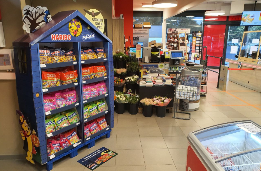 Halloween en Sint-Maarten zijn feestdagen die steeds populairder worden in Nederland en hier willen de retailers op inspelen. Met Halloween gaan kinderen verkleed langs de deuren en roepen ze “trick or treat”. Je krijgt dan de keus om een snoepje te geven of dat ze een geintje bij je uit mogen halen. Tijdens Sint-Maarten gaan de kinderen ook langs de deuren, maar dan veelal met een lampion en zingen ze liedjes. Dit doen ze ook in ruil voor een snoepje. Het Haribo snoephuisje is geheel in de Halloween/St. Maarten stijl en refereert naar het huis waar je langs moet om snoepjes te krijgen. De uitdeel producten van Haribo/MAOAM passen perfect bij dit moment omdat een minizakje precies een portie snoep is wat je kan uitdelen aan de deur. Vandaar dat ook op de communicatie uitingen staat: Uitdelen doe je met Haribo/MAOAM. Via de boodschap “Heb jij ze al in huis?” willen we de consument triggeren om snoep in huis te halen. Want je zou maar geen snoep in huis hebben als de kinderen langs de deur komen…In totaal zijn in Nederland en België 1750 displays geplaatst.