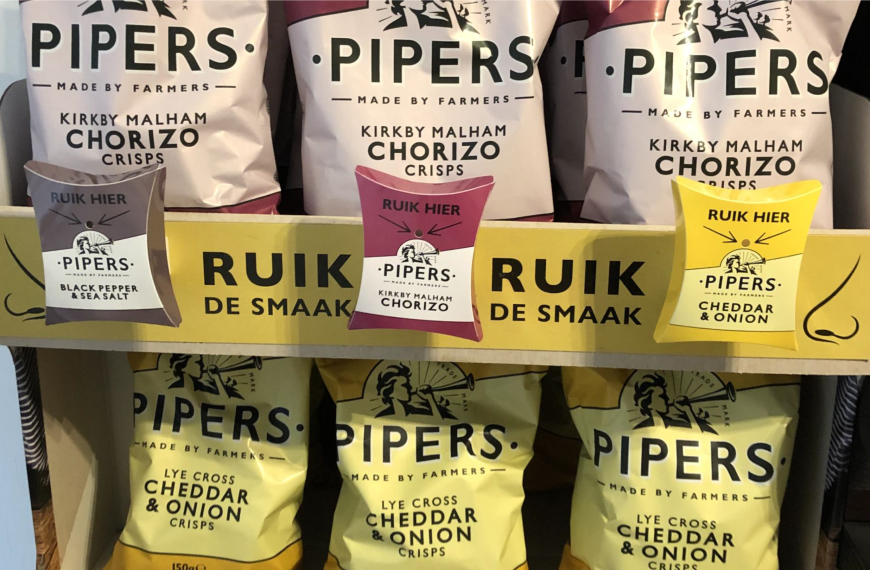 Het doel van de geurdisplays is om de winkelvloer conversie van hetnieuwe premium chips merk ‘Pipers’ significant verhogen door op een unieke en corona proof manier de smaken te laten ruiken aan de consument. Aangezien 80% wat we proeven via onze neusreceptoren gaat, kunnen smaken bijzonder goed onder de aandacht gebracht worden aan de hand van geurbeleving.Aangezien tastings in de winkel niet mogelijk is op het moment van introductie, kunnen consumenten zonder iets aan te raken de 3 Pipers smaken ruiken via de geurtesters (in de vorm van de chipszak ). De Pipers geuren zijn ook door een regulier mondkapje heen aan te ruiken.