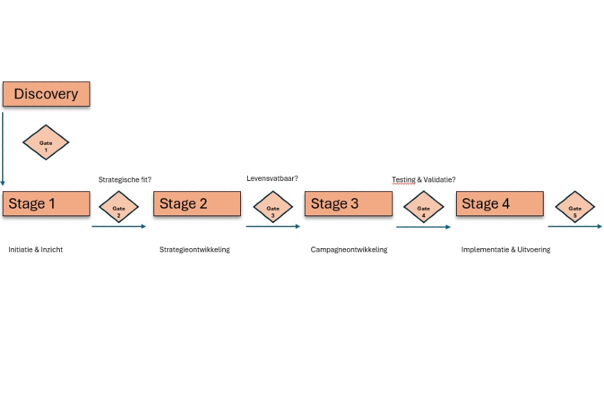 Gate 4: Implementatiebeoordeling Bij deze gate wordt de implementatie geëvalueerd op basis van prestaties, klanttevredenheid en operationele efficiëntie. Eventuele problemen worden geïdentificeerd en aangepakt voordat de campagne op grotere schaal wordt uitgerold.